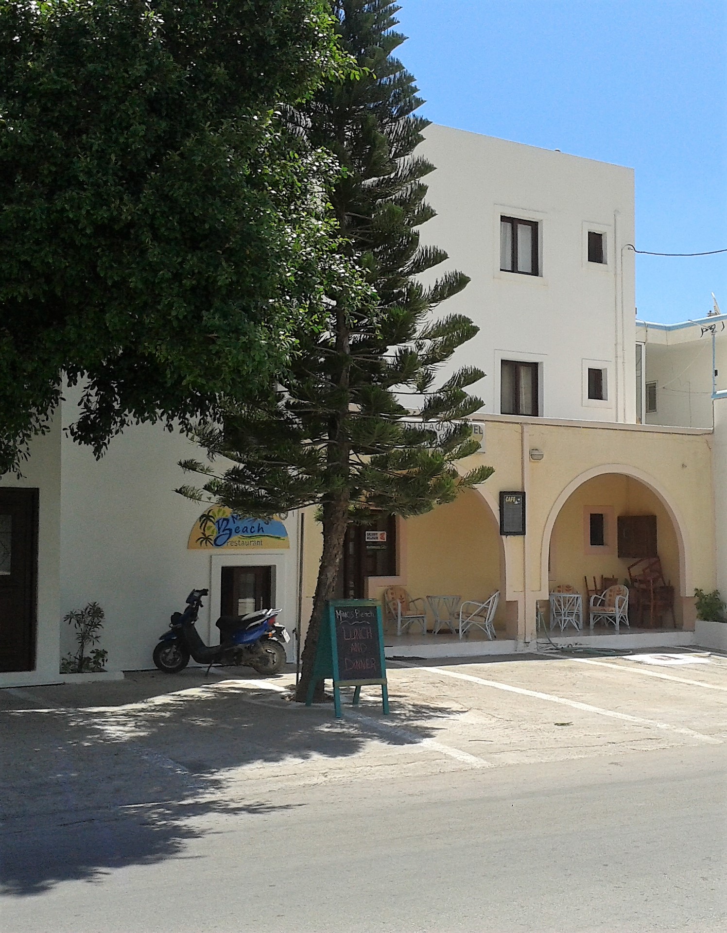 Anlage: Das familiäre Hotel verfügt über insgesamt 15 Zimmer verteilt auf 3 Stockwerke und bietet eine Lounge, ein griechisches Restaurant und eine Beach/Snack-Bar, WIFI in den öffentlichen Bereichen und im Zimmer, Safe an der Rezeption gegen Gebühr. Liegen und Sonnenschirme am Strand gegen Gebühr, Parkplätze gratis.