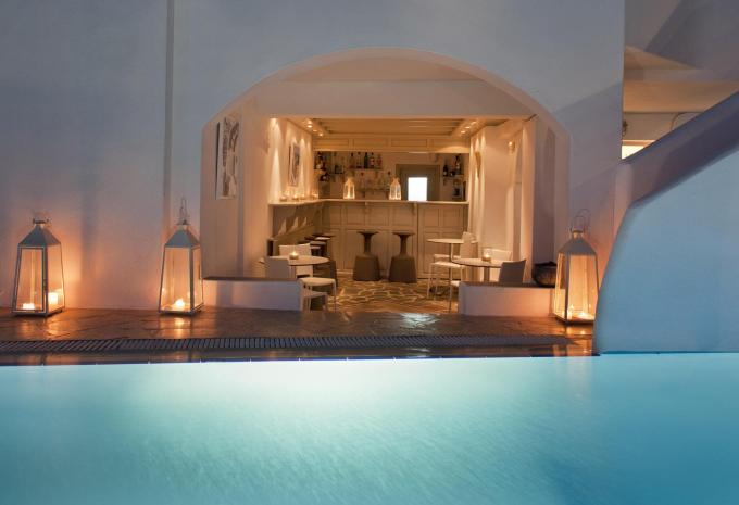ANLAGE: Das kleine Luxus-Hotel mit nur 19 Zimmern verfügt über 1 Sonnenterrasse mit Panoramablick auf die Caldera, Swimmingpool, Sonnenliegen und Schirme inkl. Empfangsbereich mit Rezeption, Poo/Snackbar, Parkplätze nach Verfügbarkeit ohne Gebühr
