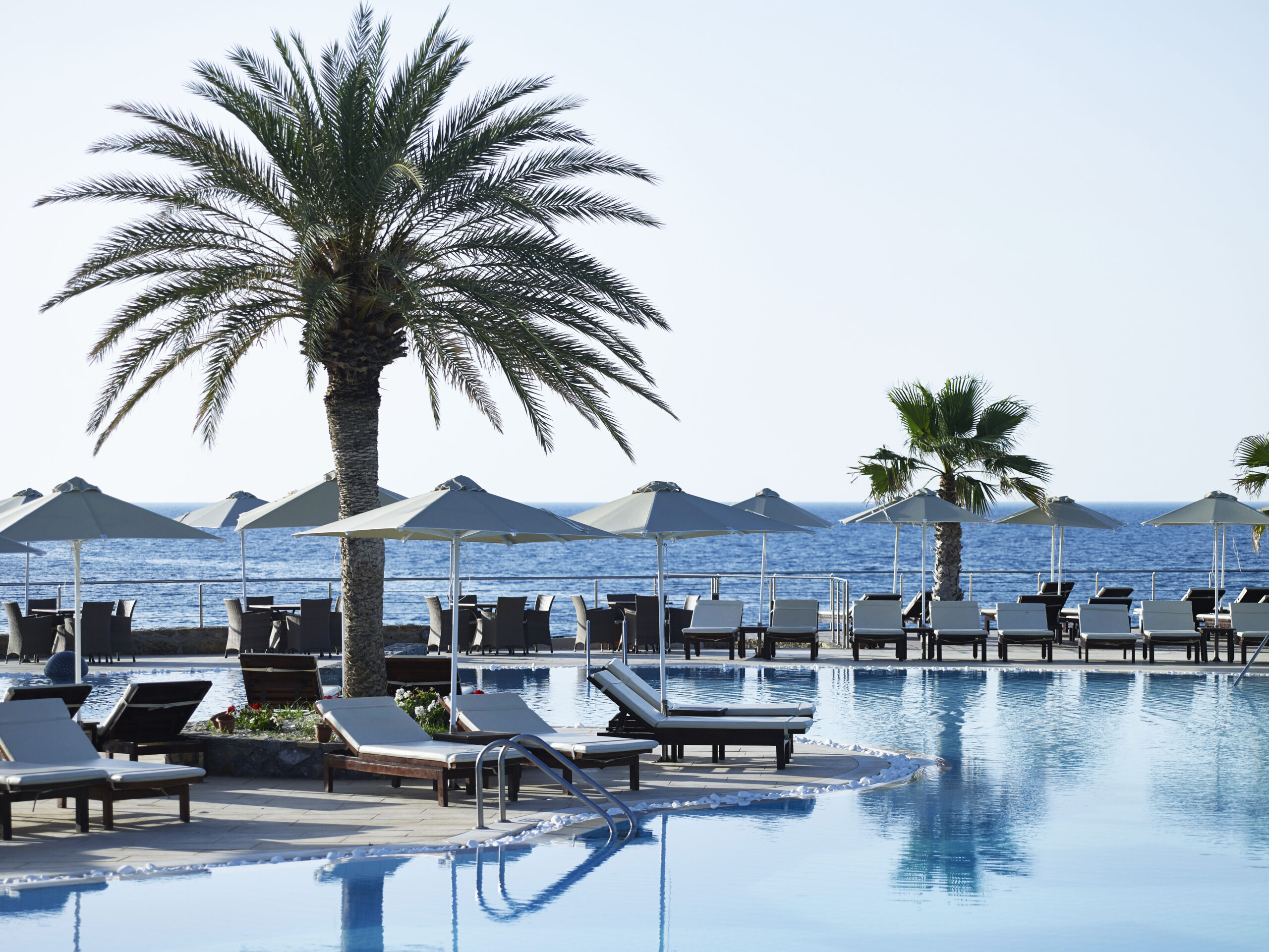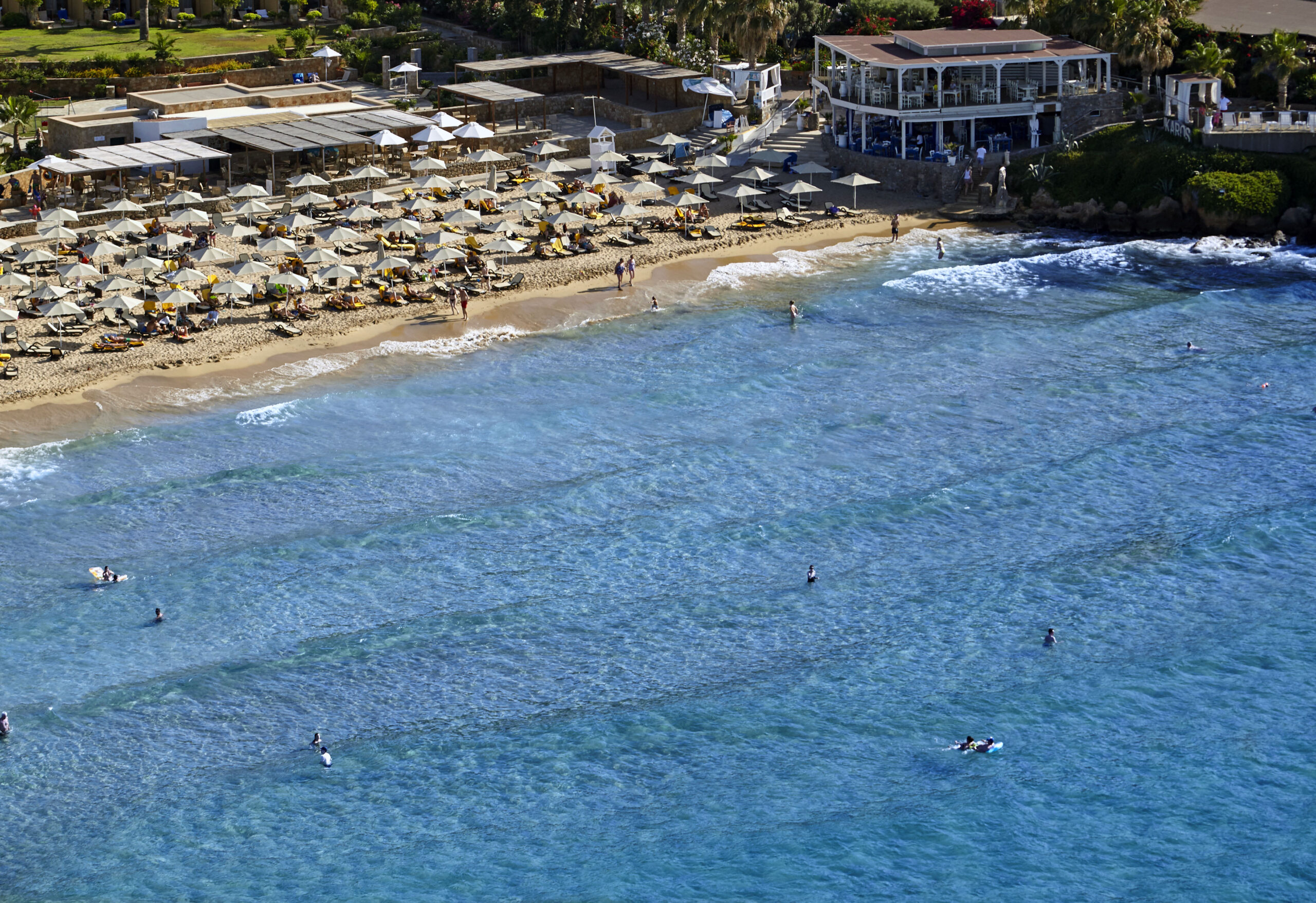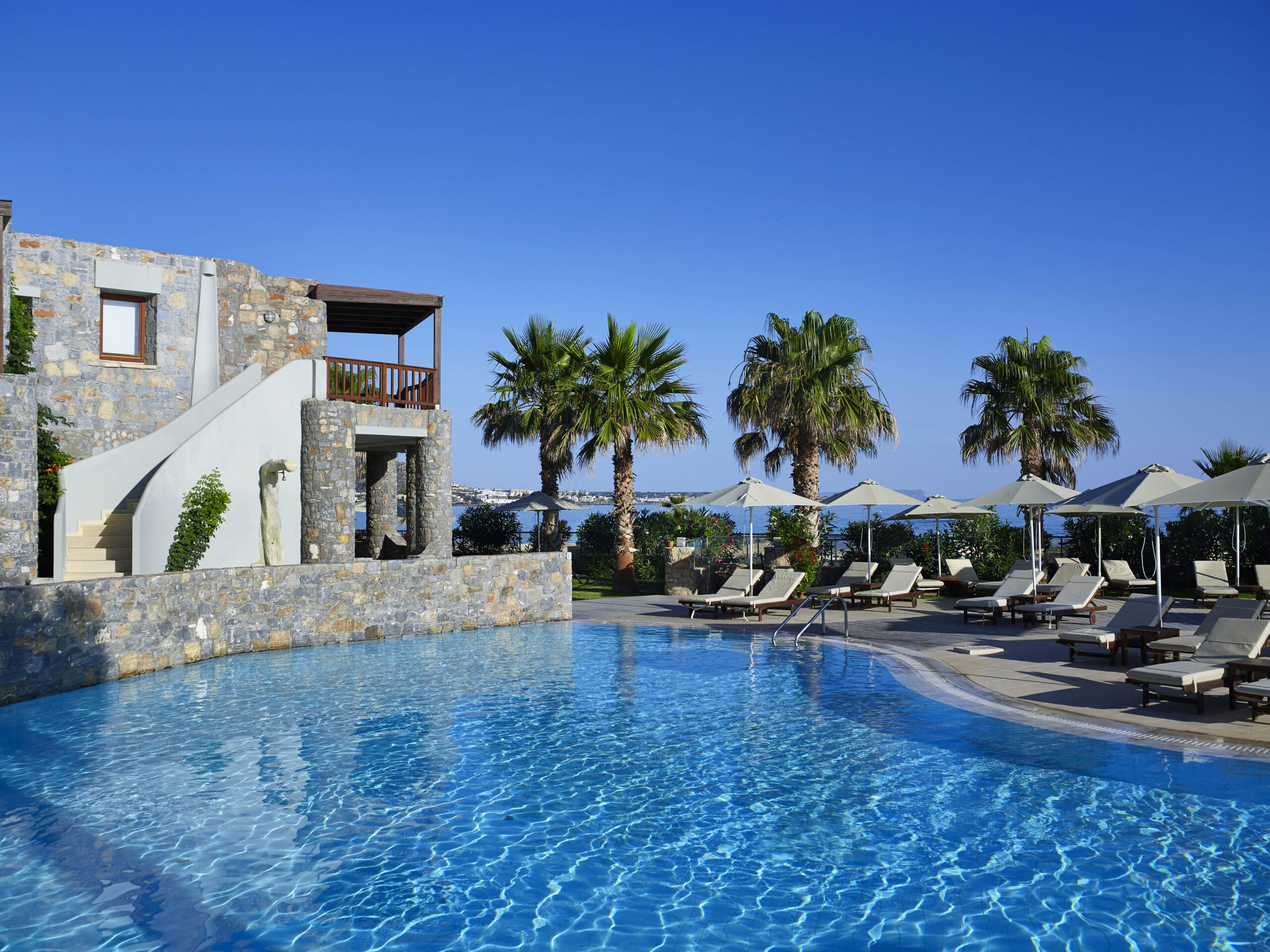 Anlage: Die Anlage im kretischen Stil besteht aus einem Haupthaus und 2 Nebengebäuden. Zu den Annehmlichkeiten des Hauses zählen ein Hauptrestaurant, ein À-la-carte-Restaurant, eine Bar, Ouzerie/Strand-/Snackbar, Minimarkt, Wi-Fi (inklusive), Hallenbad, die Gartenanlage mit 3 Süßwasserpools, sowie Sonnenterrassen und Liegewiesen. Liegen und Sonnenschirme sind am Pool und Strand inklusive, Badetücher sind gegen Kaution erhältlich.