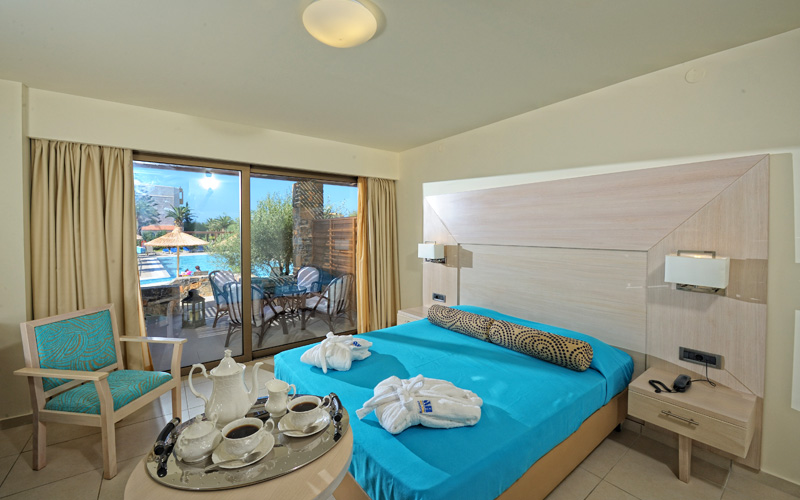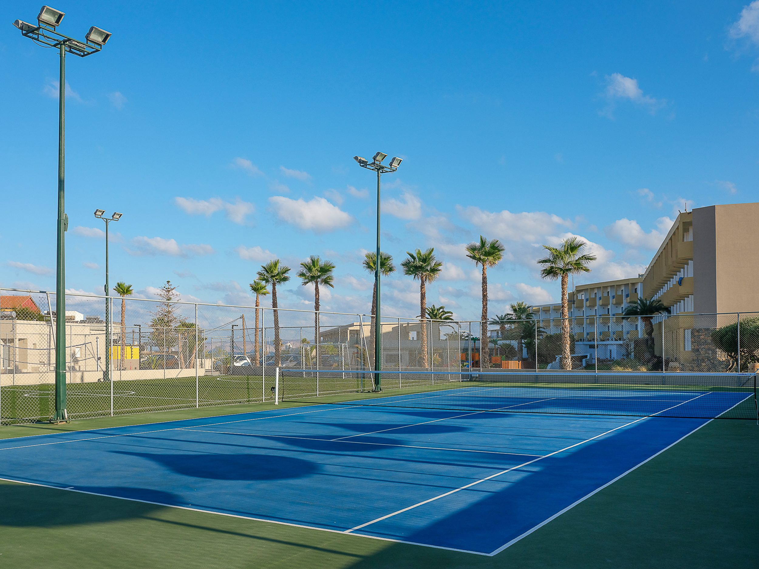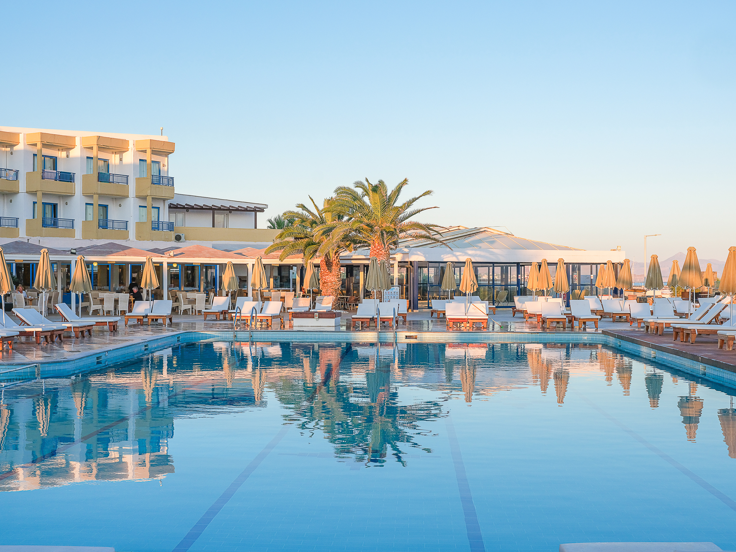 Anlage: Das beliebte, neu renovierte Hotel umfasst 330 Zimmer verteilt auf 1 Haupthaus und 2 Nebengebäude. Sie bietet ihren Gästen eine Rezeption (Mietsafe gegen Gebühr), ein Hauptrestaurant, ein á la carte Restaurant, ein traditionelles, griechisches „Kefeneio“, eine Pool-Bar, eine Lobbybar und eine Beach-Snackbar. Weiters umfasst die Anlage folgende Einrichtungen: 1 Meerwasserpool, 2 Süßwasserpool mit sep. Kinderbecken (Süßwasser), Minimarkt, W-LAN in allen öffentlichen Bereichen inkl.