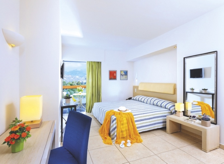Lage: Nur durch eine Küstenstrasse vom Kies-/Sandstrand getrennt, den sie sicher durch die hoteleigene Unterführung erreichen. Der Ort Sitia mit seiner Hafenpromenade und zahlreichen landestypischen Tavernen ist nur ca. 300 m entfernt.